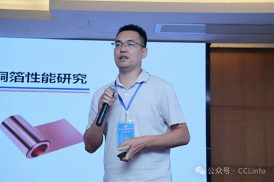 九江德福科技股份有限公司夸父实验室高级经理张杰博士作“高频电路板用R-HF1+反转处理铜箔性能研究”的报告
